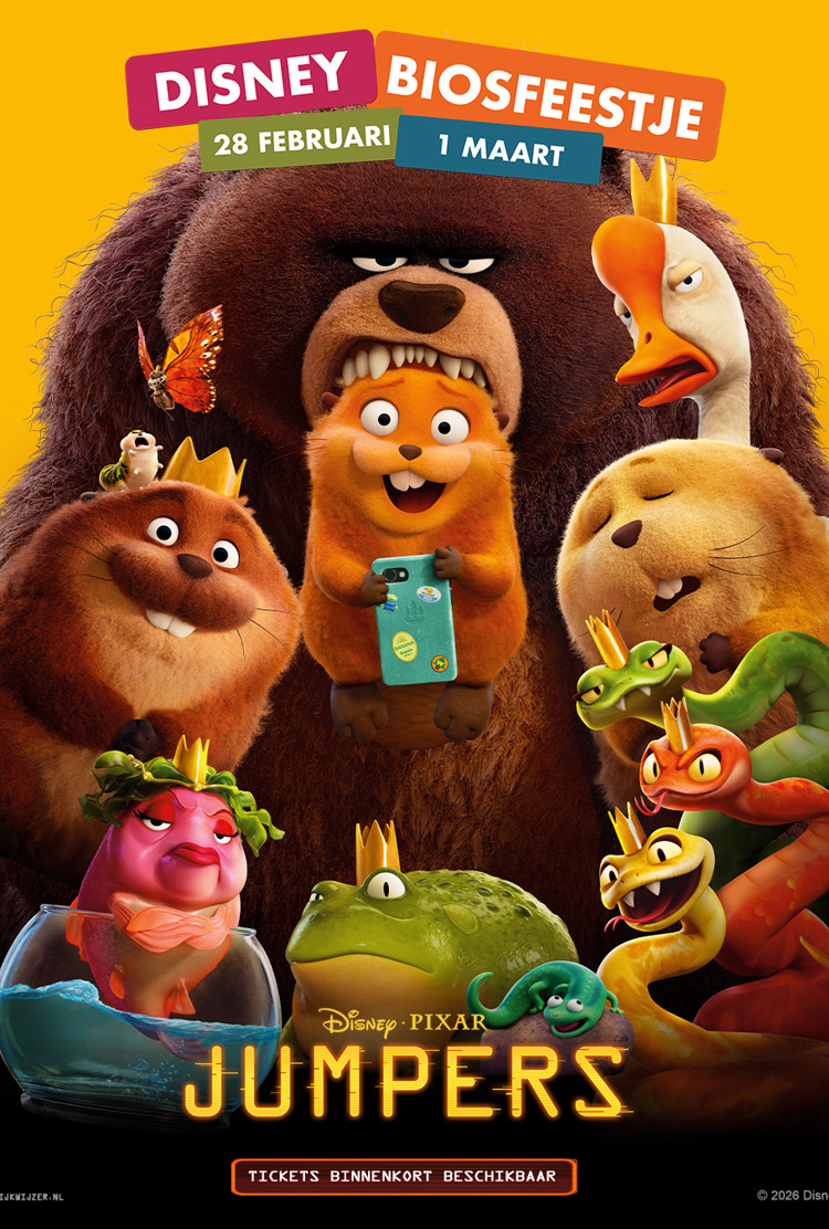Op zaterdag 28 februari en zondag 1 maart jumpen wij naar de wereld van Jumpers. In deze gloednieuwe Pixar film volgen wij Mabel. Zij raakt verwikkeld in een wild avontuur wanneer zij de kans krijgt haar bewustzijn te ‘hoppen’ in een robotachtige bever. Met deze technologie kan zij niet alleen dieren begrijpen, maar ook met ze communiceren. In deze dierenwereld staat alles op zijn kop. Maak kennis met allerlei nieuwe personages in een filmervaring die je absoluut niet wil missen! Het Disney Biosfeestje staat helemaal in het thema van Jumpers. Alle kinderen krijgen bij binnenkomst een kleinigheidje in het thema van de film, met daarbij natuurlijk wat lekkers te eten en drinken! Ben jij klaar voor dit onvergetelijke avontuur? Jump dan met ons mee naar de wereld van Jumpers!